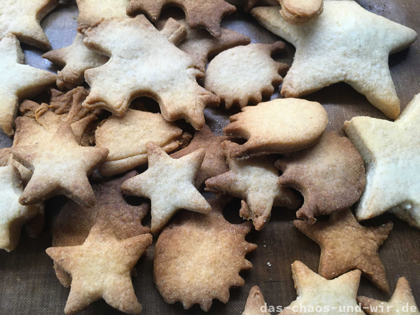 - Den Teig ausrollen und Kekse ausstechen oder ausschneiden