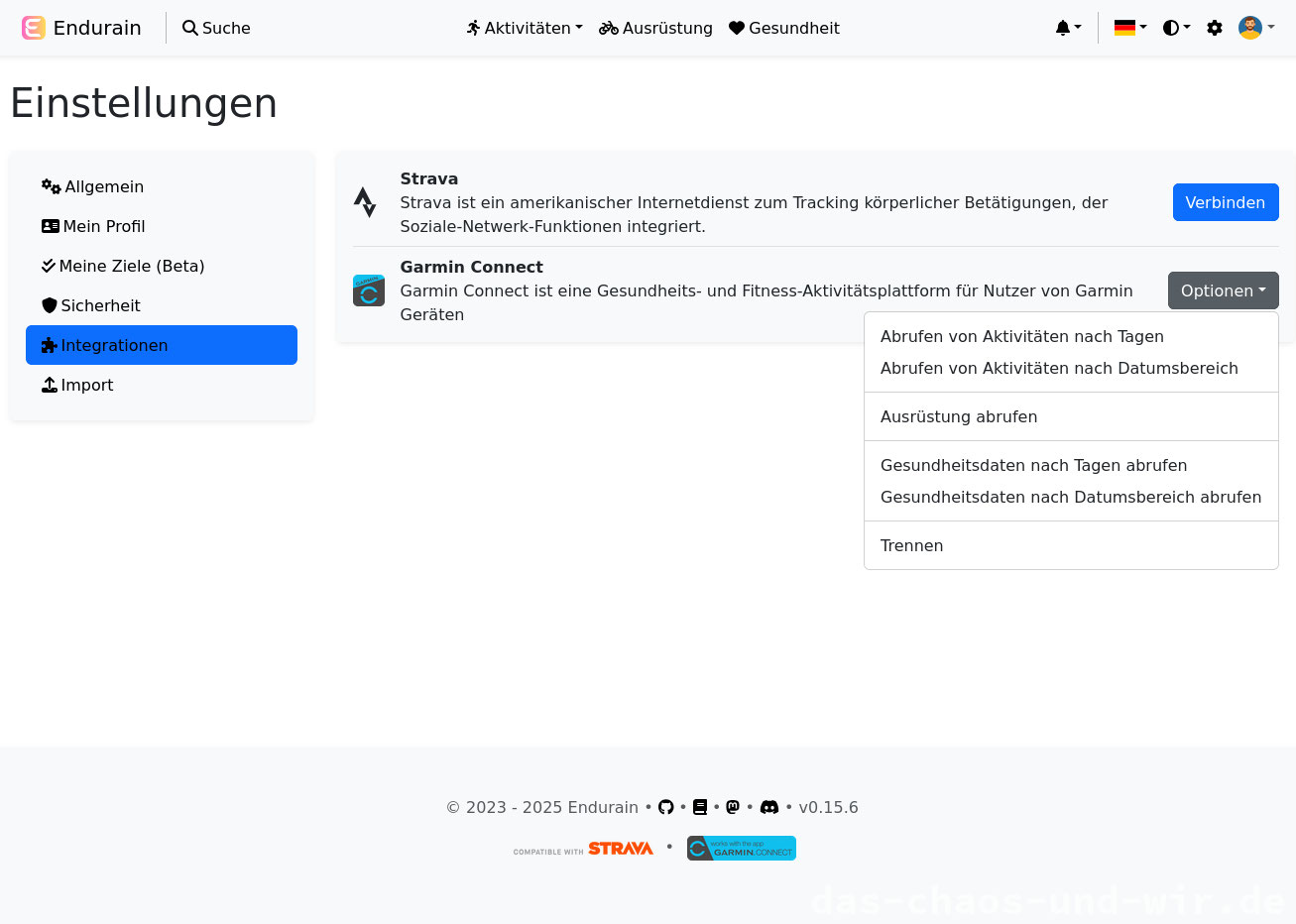 In diesem Artikel beziehen wir uns auf Endurain in Version 0.15.6 welche am 3.11.2025 erschienen ist.