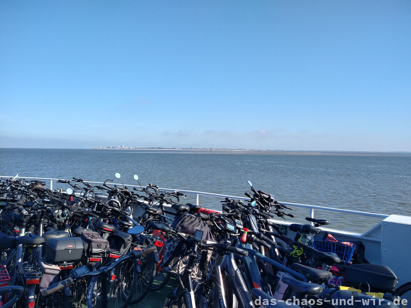 Die Fähre legte gegen 10:37 Uhr vom Fähranleger ab und wir trafen ca. 1 Stunde später auf Norderney ein. Neben Fußgängern und Radfahrer befanden sich auch ein paar Autos mit auf der Fähre.